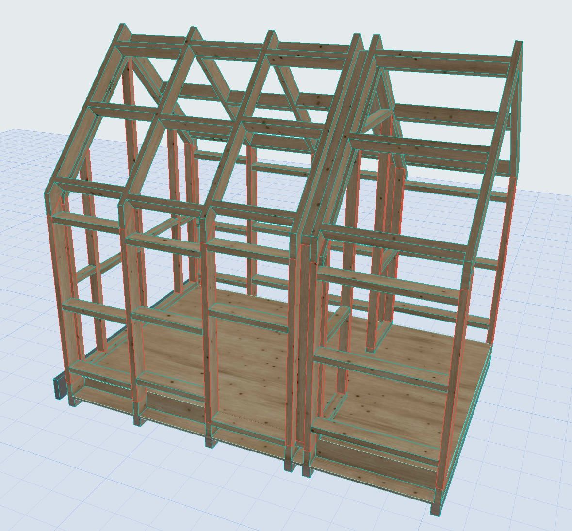 - C24 spruce ribbed frame with spruce facade, wainscoting, and flooring